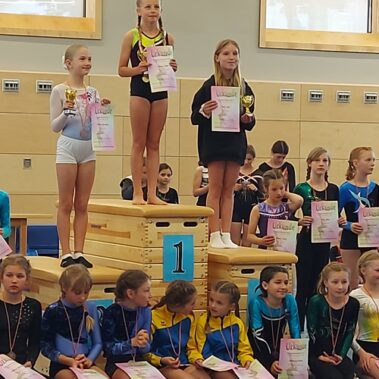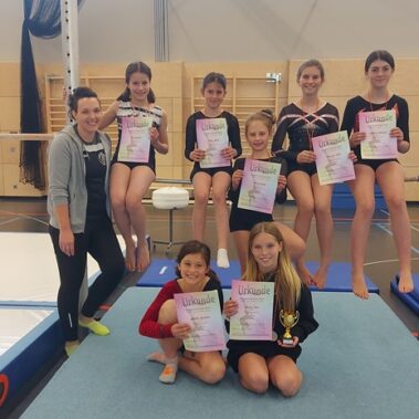 Wettkampfneuling Anida Filan erwischte beim Turnbasiswettkampf in Penzberg einen sehr guten Tag. Am Boden und Balken turnte sie den höchstmöglichen Schwierigkeitsgrad, an Reck und Sprung eine Wertungsstufe niedriger. Die Kampfrichter waren voll des Lobes und gaben ihr für die erbrachten Leistungen durchweg hohe Bewertungen. Diese führten am Ende des Tages zu einem überraschenden 2. Platz in der Wettkampfklasse 6 (Jahrgang 2014). Eine herausragende Leistung für den 1. Wettkampf in Anidas noch jungen Turnerlaufbahn.